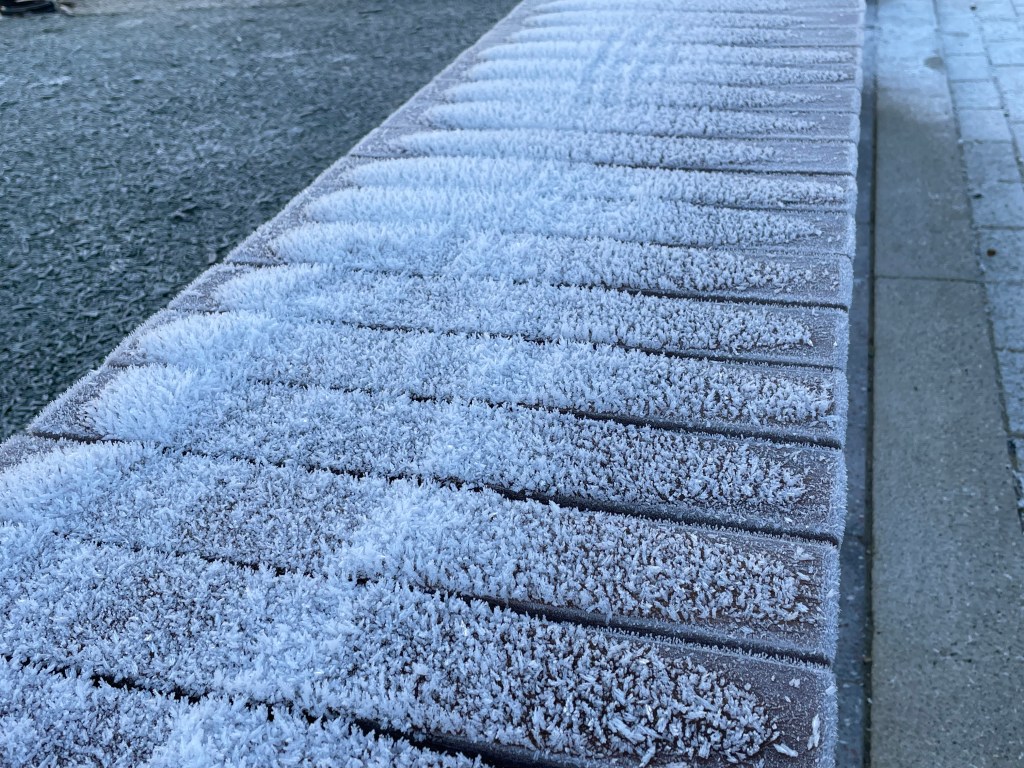 We’re enjoying the beauty of frosty mornings for the last few weeks. It was heavy (for our region) for a week in particular, with prickly frost spurs sticking up on top of benches, branches and leaves and very slippery pavements.